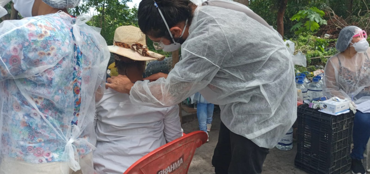 Foi ofertado aos catadores de materiais reciclados atendimento de saúde multidisciplinar com consulta médica, avaliação odontológica com aplicação de flúor, realização de teste rápido IST’s e distribuição de hipoclorito de sódio com explicação de forma de uso, por parte da ACE.
