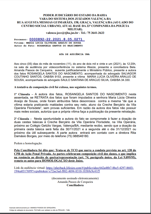 aconteceu o fato e fez seu comentários….Mas em 05/11/21 em audiência a