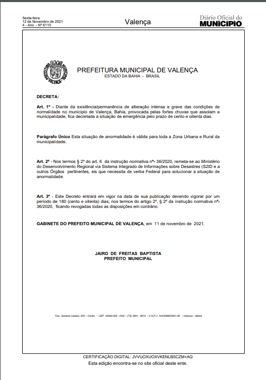 o verão inteiro, seis meses é muito tempo. Um decreto de emergência por chuvas torrenciais no verão em Valença, difícil essa situação, será que só eu
